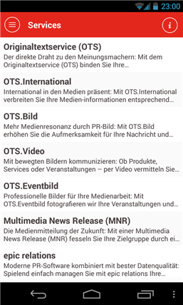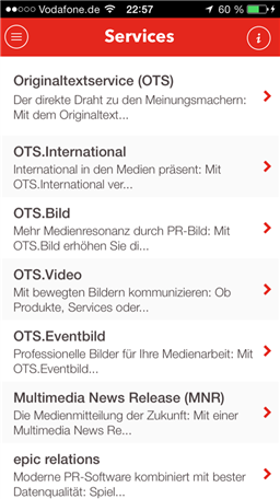 In unserer App finden Sie: - Medieninformationen und Bilder von Unternehmen, Organisationen und Behörden - Informationen und Termine unserer Events und Veranstaltungen - Details zu unseren Services und Angeboten für Unternehmen - Unsere Social-Media-Aktivitäten bei Twitter und Facebook - Kontaktdaten unseres Teams in Zürich, Anfahrt zu uns und unsere Medienmitteilungen - Unsere aktuellen Videos