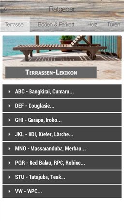 Die Holzmarkt App ist eine App rund um Ihr Haus, Ihre Wohnung und ums Wohnen. Aktuelle Angebote aus unserem Shop, unsere Kataloge oder Infos zu unserem Unternehmen finden Sie ab sofort direkt auf Ihrem Smartphone. Neben den aktuellen Events, finden Sie auch umfangreiche Ratgeber zum Thema Holz und Terrassen. Dazu finden Sie alles rund um die Holz-Card unsere Kundenkarte für Kunden vom Holzmarkt Wörlitz.