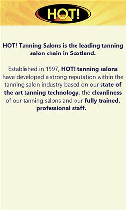 HOT! Tanning Salon is the leading tanning salon chain in Scotland. Established in 1997, HOT! tanning salon's have developed a strong reputation within the tanning salon industry based on our state of the art tanning sunbeds, award winning spray tan booth & fully trained, professional staff. 27 salon's across Glasgow & the West.