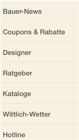 Die Bauer-App ist die App für Alles rund um Holz, Garten, Terrassendielen, Wohnen im Garten und Bauen. Neben den aktuellen Events, finden Sie auch umfangreiche Ratgeber zum Thema Holz und Terrassen. Aktuelle Angebote aus unserem Shop, unsere Kataloge oder Infos zu unserem Unternehmen rund das Angebot ab. Dazu finden Sie alles rund um die Bauer-Card unsere Kundenkarte für Kunden von Bauer.