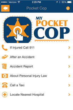 My Pocket Cop is one thing you don't think you’ll ever need, until you do. But if you’re in a car accident, you'll be glad you took a few seconds to download it. Even minor car accidents cause anxiety preventing the exchange of accurate information. My Pocket Cop app provides helpful resources, straightforward to-do’s and evidence gathering tools to ensure you or your loved ones are informed and protected after a car accident. None of us likes to think about it, but hits happen.