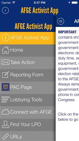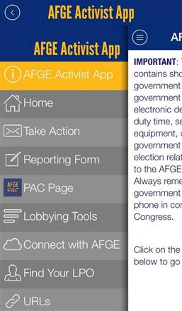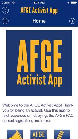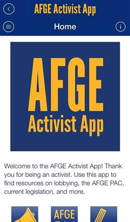 The AFGE Activist App allows users to find resources on lobbying, the AFGE PAC, current legislation, and more.