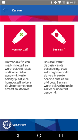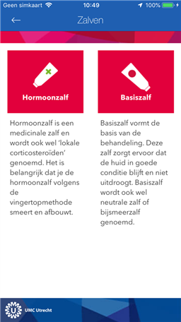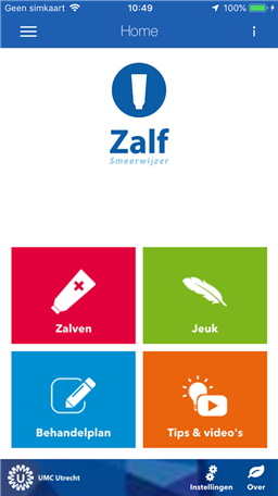 Deze app is ontwikkeld door Internetdiensten Nederland in opdracht van de afdeling Dermatologie/Allergologie van het UMC Utrecht. De Zalfapp geeft stapsgewijs instructies en informatie over de behandeling met hormoonzalven en basiszalven bij (chronische) huidaandoeningen.