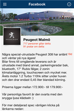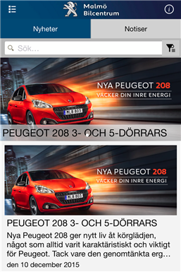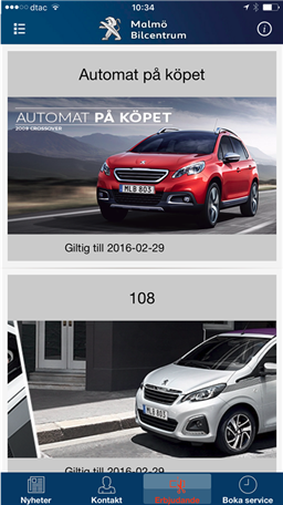 I vår app hittar du bilar till salu, erbjudande på tillbehör, kontaktinformation till våra anställda, senaste nyheterna och möjlighet att boka tid hos vår verkstad.