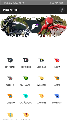 Aqui na APP você encontra duas Revistas gratuitas a cada mês: Pró Moto On Road / Pró Moto Off-Road. Também temos a seção de notícias diárias, acesso à Web TV, Calendário de eventos, Manuais de Proprietário, Catálogo de Produtos, RSS Moto GP e as Edições Anteriores da Revista Pró Moto. O APP ocupa pouquíssimo espaço em seu celular ou tablet. Baixe grátis e comece a utilizar agora mesmo.