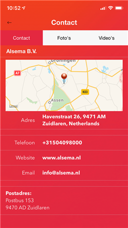 English: This is Alsema's app. In this app you will find information about - Maintaining solar panels and heat pumps - Equipment that is available for rental in the Zuidlaren region - Versatile and fun jobs in the region Zuidlaren - Interesting internship assignments for interns