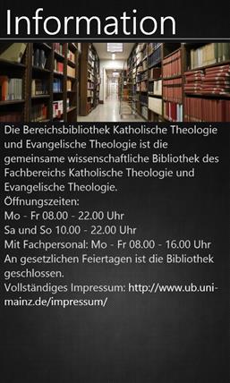 Die wichtigsten Informationen der Bereichsbibliothek Theologie: