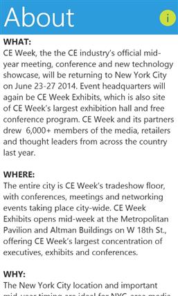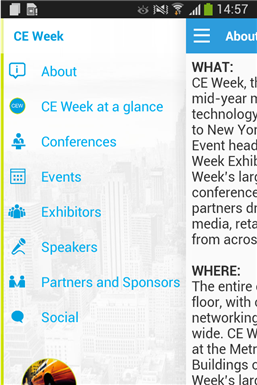 The CE Week app keeps you connected and informed about all the events surrounding the 2014 CE Week Exhibits & Conferences