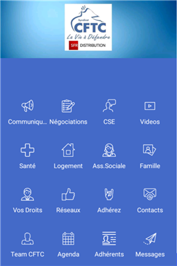 L'application CFTC pour tous les salaries SFR Distribution. Restez à la pointe de l'information social dans le réseau de distribution. Retrouvez nos derniers communiqués, accédez aux ressources des instances, consulter les compte-rendu des réunions, aux accords d'entreprise, Droits, Travail, Social, Famille, Santé , Epargne, toutes les ressources du quotidien, consulter nos réseaux, recevez nos messages push en temps réel, contactez nous en 2 clics !