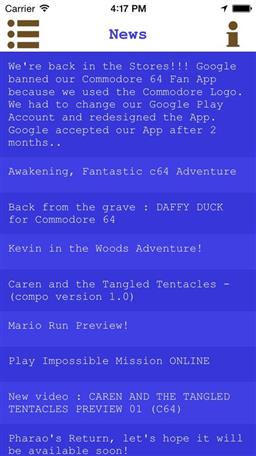 Welcome to the great Commodore 64 Fan App, this app is life and will be updated on a regular base. Feel free to comment us and give us your input!