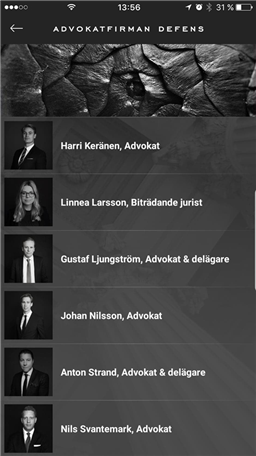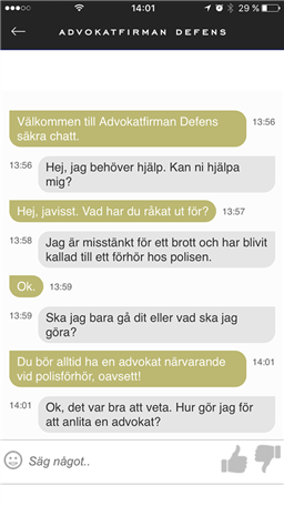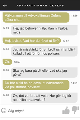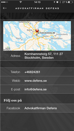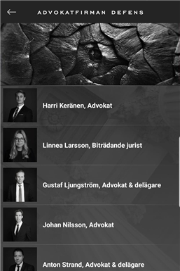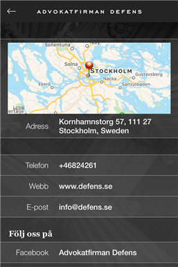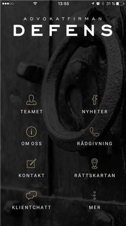 Med appen Advokatfirman Defens får du tillgång till flera tjänster som att kunna chatta krypterat med våra advokater och jurister, söka i ordlistan eller hitta till relevanta platser som domstolar, ämbeten och advokatombud m.m.
