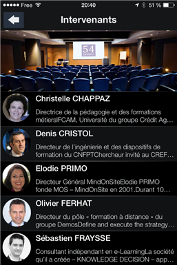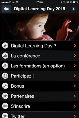 LE SHOWCASE le vendredi 24 juin 2016 Une journée dense pour se faire une idée des dernières innovations en Digital Learning : avant-premières, pitchs de solutions et démonstrations. Savez-vous combien vous coûte une recherche de fournisseur ? Accélérez votre sourcing tout en découvrant et renforçant votre connaissance du marché. Gagnez un temps précieux de recherche, sélection, rencontres, allez droit au but. L’entrée au Digital Learning Day Showcase peut-être partagée entre plusieurs personnes sur la journée. Les pitchs et les démos (de 20 minutes) s’enchaînent toute la journée et sont organisées en 6 thèmes : MATIN : Thème 1 : LMS & plateforme MOOC/SPOC Thème 2 : Outils auteur & CMS (Content Management System) Thème 3 : Réalité virtuelle/augmentée & Serious Game APRES-MIDI : Thème 4 : Mobile learning Thème 5 : Contenu sur étagère & Dispositif pédagogique complet Thème 6 : Blended-Learning (présentiel numérique, classe virtuelle)