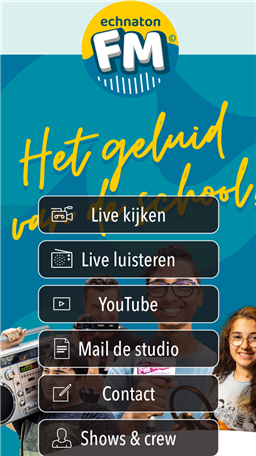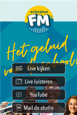 Functies Echnaton FM app: - Kijk en luister mee naar onze programma's, live vanuit school of op locatie - Blijf in de app op de hoogte van al het nieuws via onze socials - Beluister podcasts en de allerbeste audiofragmenten - Bekijk de beste video's van ons eigen YouTube-kanaal Echnaton TV