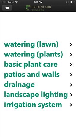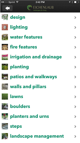 If you are an existing client, we thank you for choosing to work with us. This app will help you to easily reach your Eichenlaub contacts, give you lots of ideas! for your outdoor spaces, provide you with basic product care, and find and order items for your garden such as replacement light bulbs and fish food with our store button. Looking for services other than landscaping? Touch the other help button for recommendations on services from architects – large tree removals. Our goal is to provide you with the highest level of quality and service in the business, if you feel you are not getting the attention you deserve use the comments button to contact the people who can get things back on track. We appreciate your comments and reviews. The review us button lets you easily review our work on Facebook, Google, and Houzz.