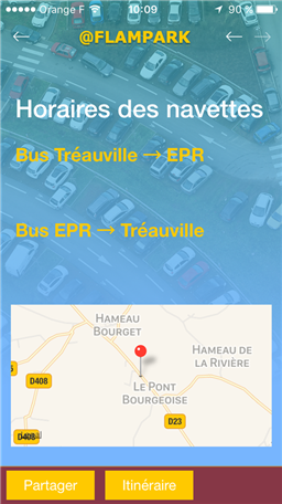 L’application FLAMPARK est destinée au personnel des entreprises travaillant sur le site de l’EPR de Flamanville (50). Elle permet de situer les parkings déportés et connaître les horaires des navettes, de plus elle permet d’être informé en temps réel la disponibilité des parkings.