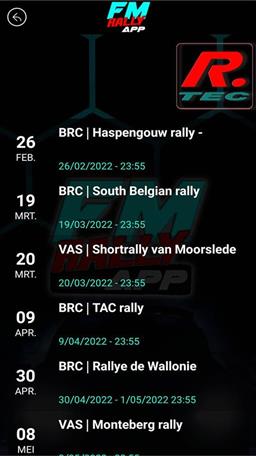 De FM rally APP is dé gratis mobiele applicatie die elke Belgische rallysupporter móét downloaden! Deze rally APP houdt de doorwinterde rallyfan live op de hoogte van resultaten, nieuws, videos, ... voor- tijdens- en na de rallywedstrijd!