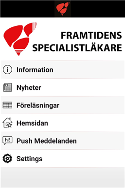 Denna app är fram för allt till för att skapa en överblick över de kurser och föreläsningar som erbjuds under kongressen Framtidens Specialistläkare. Nedan kommer en kortare beskrivning av de olika funktionerna: