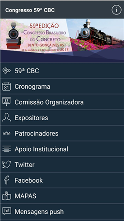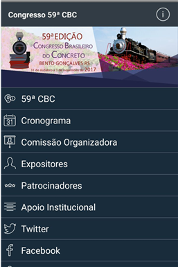 Fique por dentro de todas as informações do 59° CONGRESSO BRASILEIRO DO CONCRETO. Aqui você pode ter fácil acesso a programação do evento, mapas do eventos, e agenda onde você pode organizar a sua própria agenda com a programação do congresso.
