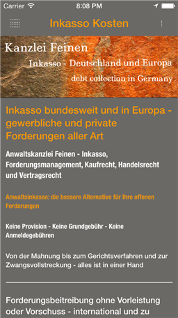 Inkasso bundesweit und in Europa - gewerbliche und private Forderungen aller Art. Anwaltskanzlei Feinen Köln - Inkasso, Forderungsmanagement, Kaufrecht, Handelsrecht und Vertragsrecht. Es ist möglich offene Forderungen direkt einzugeben. Viele Infos um das Thema Inkasso, Tipps, Aktuelles