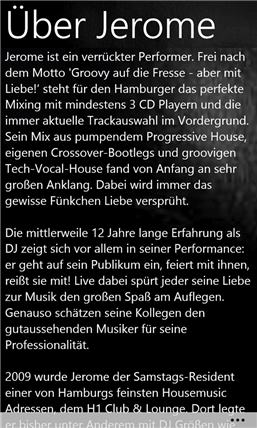 Jerome ist ein verrückter Performer. Frei nach dem Motto: 'Groovy auf die Fresse - aber mit Liebe!‘ steht für den Hamburger das perfekte Mixing mit mindestens 3 CD Playern und die immer aktuelle Trackauswahl im Vordergrund. Sein Mix aus pumpendem Progressive House, eigenen Crossover-Bootlegs und groovigen Tech-Vocal-House fand von Anfang an sehr großen Anklang. Dabei wird immer das gewisse Fünkchen Liebe versprüht.