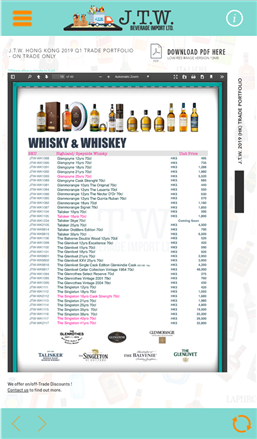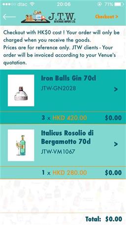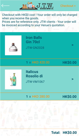 Order your spirits and liqueurs here through JTW App for your bar and restaurant in Hong Kong. With a large selection of over 1000 products of spirits and liqueurs, this is your mobile, most accessible spirit distributor. This app is dedicated to premium spirits and liqueurs, helping you to provide the best for your customers, from easy ordering to prompt delivery. This is the one stop solution for your bar or restaurant.