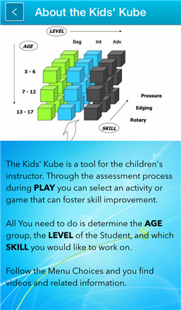 Kids’ Kube is the app that will help ski & snowboard instructors guide the way to providing an effective activity or game, specifically geared toward your younger students.