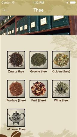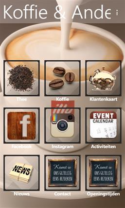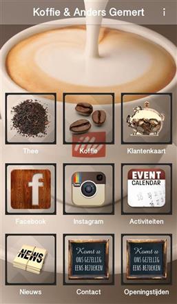 Koffie & Anders totaaloverzicht van het assortiment koffiebonen en losse thee (naam, beschrijving, ingrediƫnten, zetwijze) met Facebook en Instagram koppeling, activiteiten kalender, nieuwsoverzicht, contact informatie en klantenkaart.
