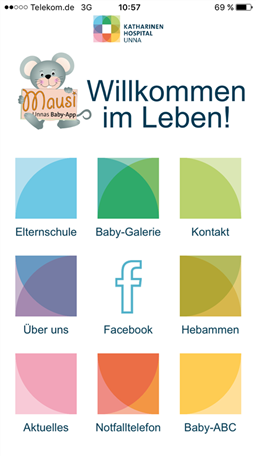 „Mausi – Unnas Baby App“ ist Ihre kostenlose Baby-App des Katharinen Hospitals in Unna. Mausi versorgt Sie mit allen Informationen rund um das Thema Schwangerschaft und Geburt. Informieren Sie sich über unsere Kreißsäle, die Mutter-Kind-Station, unser Team, das FamilienForum Katharina und über deren Kurse sowohl vor als auch nach der Geburt. Für Notfälle hält Mausi die wichtigsten Rufnummern parat. Stöbern Sie in der Baby-Galerie nach Neugeborenen, die bei uns das Licht der Welt erblickt haben.