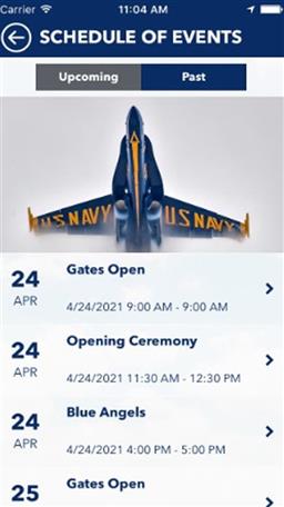 FEATURES: - Be the first to know about new performers and static displays - View the daily Air Show lineup - Purchase Premium Seating from your phone - Get answers to the most commonly asked questions - See the most complete and updated list of performers, displays, and activities - Click "Yes" to Push Notifications to receive important show updates and messages.