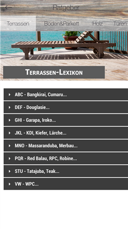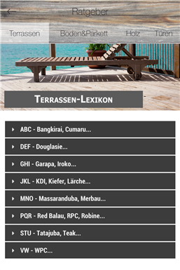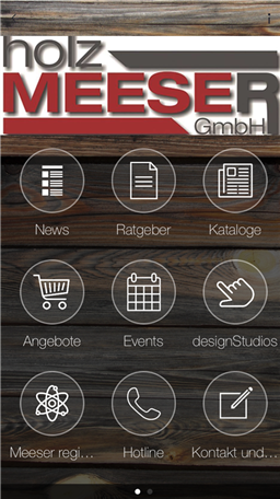 Meeser - App für Alles rund um Holz, Garten, Terrassendielen, Wohnen im Garten und Bauen. Neben den aktuellen Events, finden Sie auch umfangreiche Ratgeber zum Thema Holz und Terrassen. Aktuelle Angebote aus unserem Shop, unsere Kataloge oder Infos zu unserem Unternehmen rund das Angebot ab.