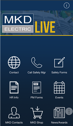 MKD Live app for current MKD Electric team members. Complete safety forms directly from your smartphone. Stay current with all the latest news and events, and shop directly at the MKD shop from within the app.