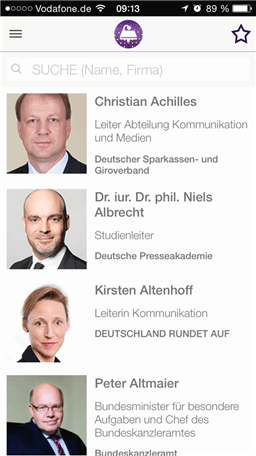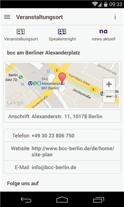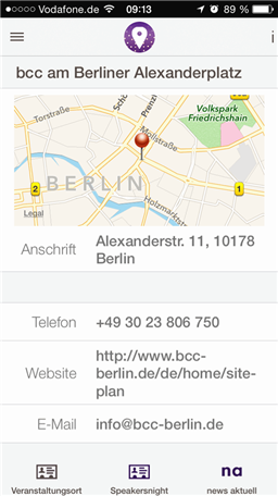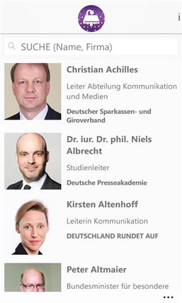 Inhalte: - das gesamte Kongress-Programm im Überblick - alle Sponsoren, Speaker und Referenten sind aufgeführt und werden vorgestellt - alle Tweets und Posts zum Kommunikationskongress können direkt in der Timeline oder Pinnwand gelesen, kommentiert und geteilt werden - sämtliche teilnehmenden Unternehmen sind aufgeführt und suchbar - interaktive Kontaktfläche zum Veranstaltungort des Kongresses und der Speakersnight in Berlin