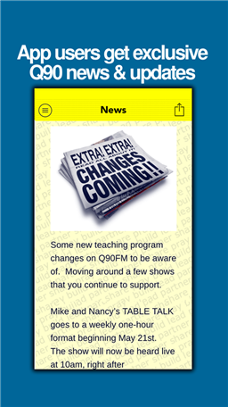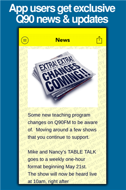 Q90FM Radio App. Lakeshore Communications, Inc. Green Bay, WI. Listen Live, Prayer Requests, Exclusive programming podcasts and newscasts, program guide, phone book, faith-building resources, social media interaction, staff photos, and more.