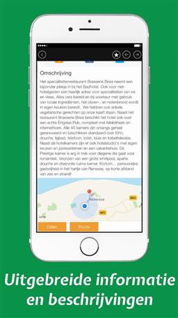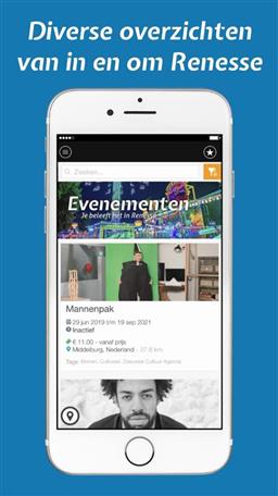 Opties: - Activiteiten direct opslaan in je agenda - Zoekresultaten filteren - Favorieten opslaan - Navigeren naar locaties - Delen met vrienden - Het actuele weer in Renesse