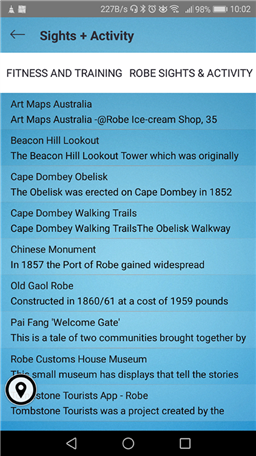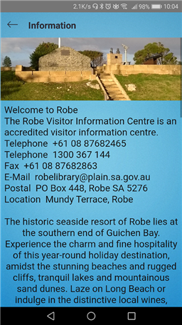Robe SA App is your ultimate guide to the town and region, in your pocket. Find the best places to eat, drink, sleep, shop, or visit and do the activities or see the sights — in and around Robe SA. Get the free app today. Find the best hotels, accommodation, restaurants, coffee, shops, and health/community services.Your guide to places to go and things to see and do all included, walking around the coast, historic sight and parks.