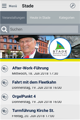 Informieren Sich über das vielfältige Angebot der Hansestadt. Einzelhandel, Dienstleister, Gastronomie, Hotellerie und Tourismus-Angebote. Wann sind Kreuzfahrtschiffte auf der Elbe zu sehen? Bewerten Sie Ihren Besuch in Ihrem Lieblingsrestaurant, Hotel oder Ferienwohnung. Suchen Sie Ihre Unterkunft und buchen Sie direkt online. Das Stadtmagazin „Stader Brise“ gibt Ihnen einen Einblick über die Veranstaltungen und Highlights der Region. Buchen Sie Erlebnisführungen, Veranstaltungen und Events direkt. Diese App wird in Zusammenarbeit mit der STADE-Tourismus GmbH erstellt.