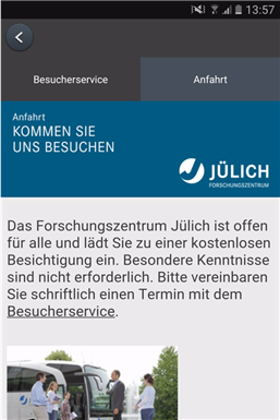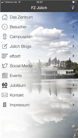 Dies ist die Campus-App des Forschungszentrums Jülich. Das Herzstück der Anwendung ist der Campusplan, ein Wegleitsystem zu den wissenschaftlichen Instituten auf dem 2,2 Quadratkilometer großen Campus in Jülich. Die App bietet zudem Daten und Fakten zum Forschungszentrum und erklärt, wie Sie die Einrichtung besuchen können. Sie fasst Social-Media-Inhalte zusammen und weist auf bevorstehende Veranstaltungen hin. In der App finden Sie auch die aktuelle Ausgabe des Magazins „effzett“.