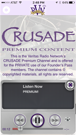 The CRUSADE Channel also features other Original Talk-Shows including Brother André Marie’s “ReConquest” Our app features: On-Demand streaming of our PREMIUM-commercial free feed. A FREE version of the On-Demand feed WITH commercials. Facebook and Twitter links to all our hosts. Access to our programming schedule. Access to our show/event calendars. A contact page. A button to call our LIVE talk-shows from inside the app and talk to our hosts on-air. A direct link to Mike Church’s legendary product store: The Founder’s Tradin’ Post.