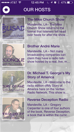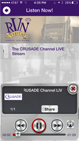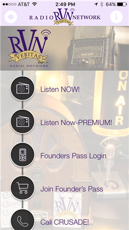 The CRUSADE Channel also features other Original Talk-Shows including Brother André Marie’s “ReConquest” Our app features: On-Demand streaming of our PREMIUM-commercial free feed. A FREE version of the On-Demand feed WITH commercials. Facebook and Twitter links to all our hosts. Access to our programming schedule. Access to our show/event calendars. A contact page. A button to call our LIVE talk-shows from inside the app and talk to our hosts on-air. A direct link to Mike Church’s legendary product store: The Founder’s Tradin’ Post.