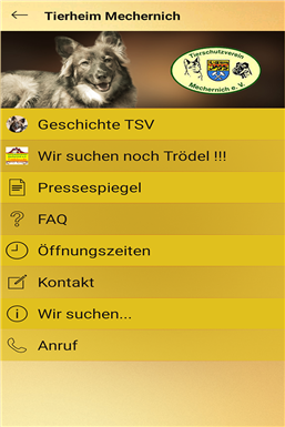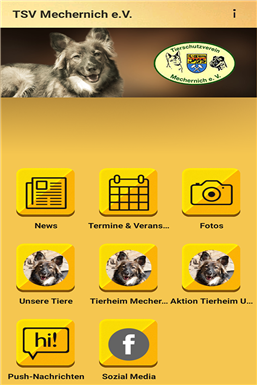 Über die App bekommt man den Ablauf beim TSV Mechernich e.V. und dem Tierheim Mechernich hautnah mit. Unter dem Button "News" findet man alles Aktuelle und bei "Termine und Veranstaltungen" alle Informationen zu unseren Veranstaltungen. Im Bereich "Fotos" stellen wir die ganze Breite der Tiere eines Kreistierheimes dar. Bei "Unsere Tiere" kann man sich über die Aktuellen oder gesuchten Tiere ausführlich informieren. Ebenso ist unter "Tierheim Mechernich" die 30-jährige Geschichte des Aufbaus des Tierheimes und die Planung für die Zukunft zu finden, oder man kann uns per E-Mail oder per Telefon kontaktieren. "Aktion Tierheim Unterstützer"zeigt unsere neue Aktion zum Bau unseres Hundehauses mit allen Infos. Unter dem Button "Push-Nachrichten" können Sie sich über Informationen in Abwesenheit informieren. Unter "Sozial Media" finden Sie unsere "Facebook" & Instagram" Accounts.