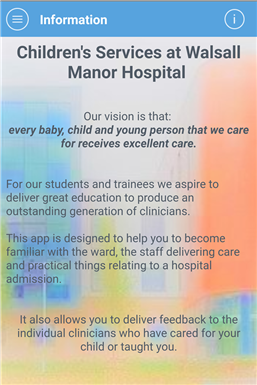 This app is designed to make the experience better for you, by providing useful information and opportunities to feedback on your care, so that we can make it match your needs.