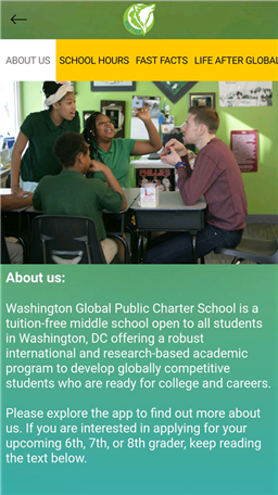 This app is specially designed for Washington Global parents. It will allow you to access the most important information regarding the school, such as grades, schedules, or contact information.